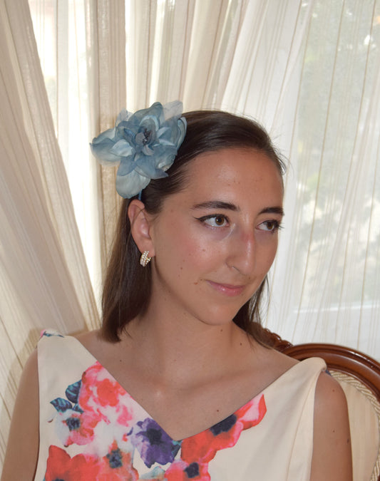 Diadema con flor azul para invitada. Tocado floral para boda, Flor de seda azul para madrina.