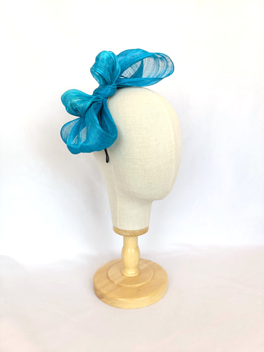 Diadema lazo azul grande elegante para invitada de boda, tocado sofisticado mujer, ideal eventos formales y celebraciones.