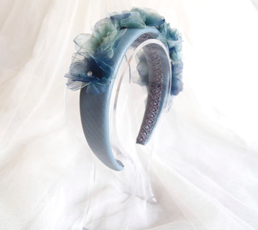 Diadema elegante para boda. Diadema elegante para comunión. Diadema para novia. Diadema azul de flores