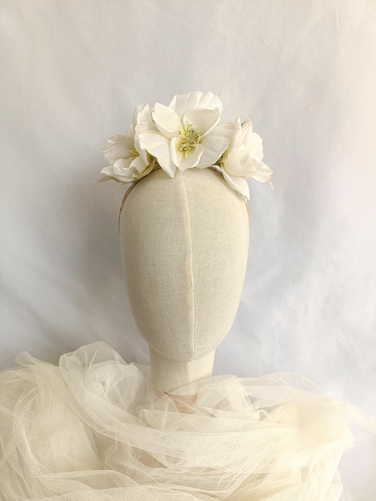 Tocado floral para novia, Tocado fascinator de flores blancas para invitada, corona de flores nupcial, Diadema de flores blancas de seda.
