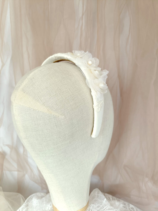 Diadema de encaje y flores blancas, tocado de novia marfil con flores y perlas, diadema elegante para niña, tocado de novia sencillo, diadema blanca para fiesta.