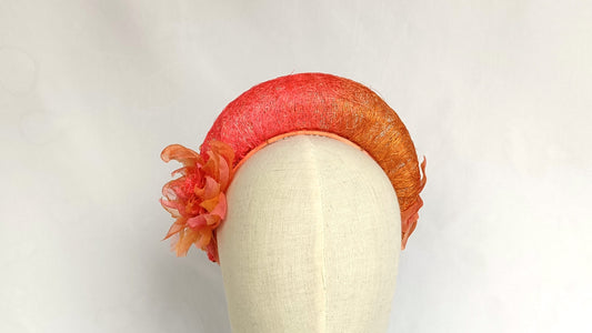 Tocado rosa y naranja para boda, diadema grande con flor naranja para invitada, tocado llamativo con flor para fiesta.