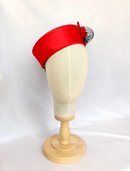 Romántico tocado de flores coral para boda, Diadema elegante con flores y encaje, Tocado fascinator de flores de seda roja con lazos de encaje para novia.