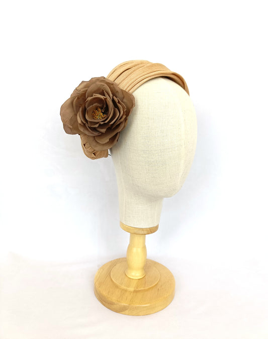 Lazon para recogido con flor en tonos marrones y anaranjados para fiesta.