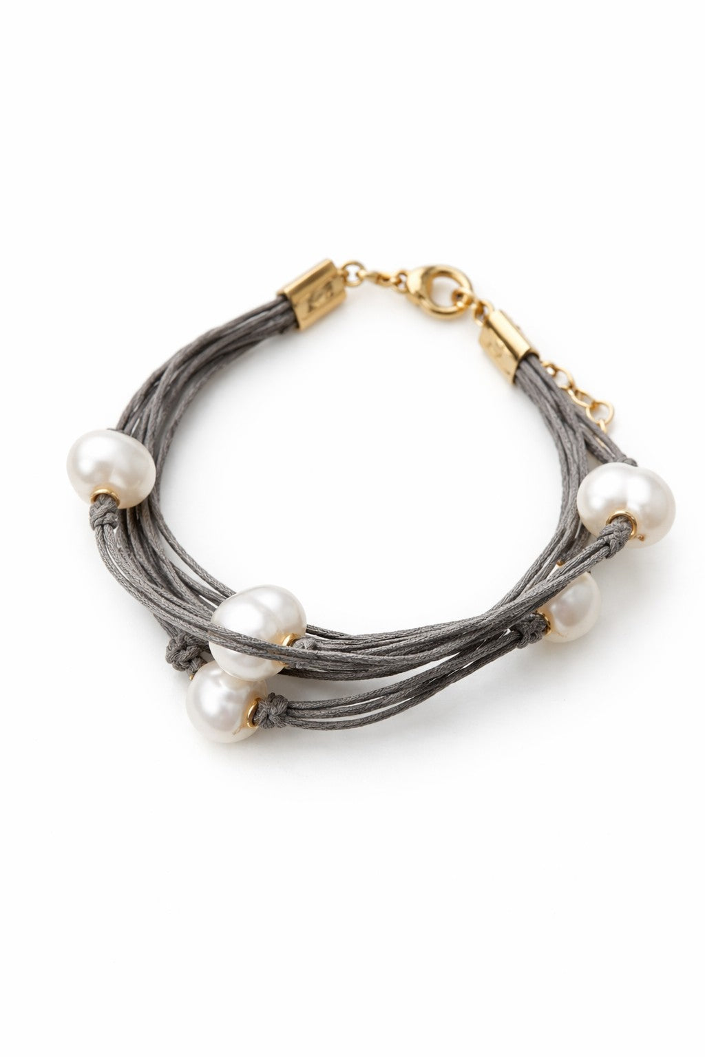 Pulsera de hilo de lino gris con perlas de agua dulce.